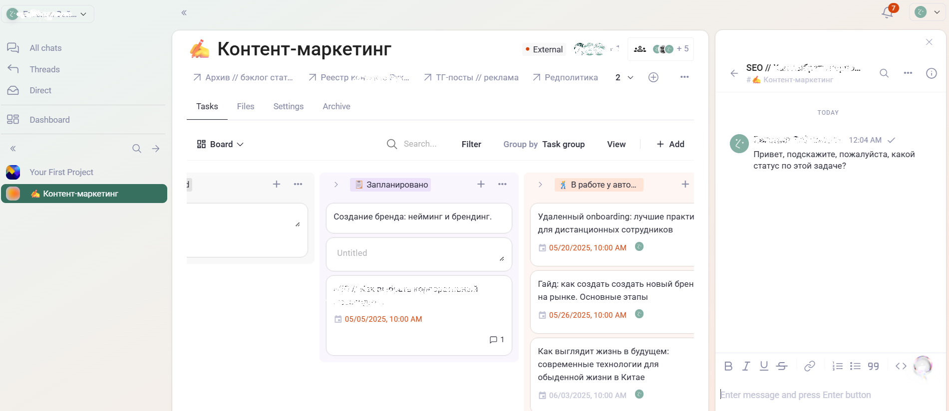 Все инструменты в Рулле доступны «из одного окна» в бесшовной рабочей среде на любом устройстве. Треды в чатах помогают структурировать обсуждение задач и не нагружать деталями основную переписку. Удобно, что можно переписываться в карточке таска, а потом открыть этот чат в ленте мессенджера. Такие кросс-сценарии помогают не терять контекст работы и сконцентрироваться на важном.