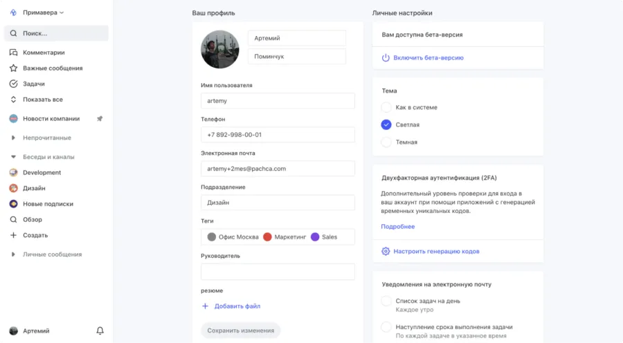 Пачка — минималистичный корпоративный сервис, который можно интегрировать в собственную рабочую платформу. Здесь есть мессенджер, видеозвонки, обмен звонками, кастомные рабочие статусы, второй фактор защиты от взлома и массовое управление пользователями.